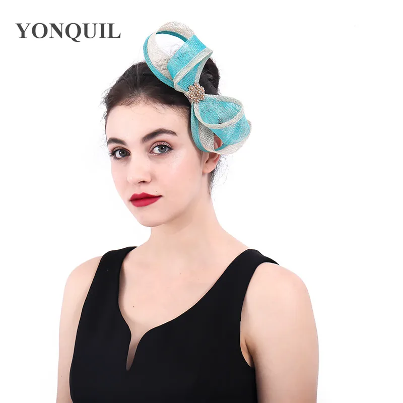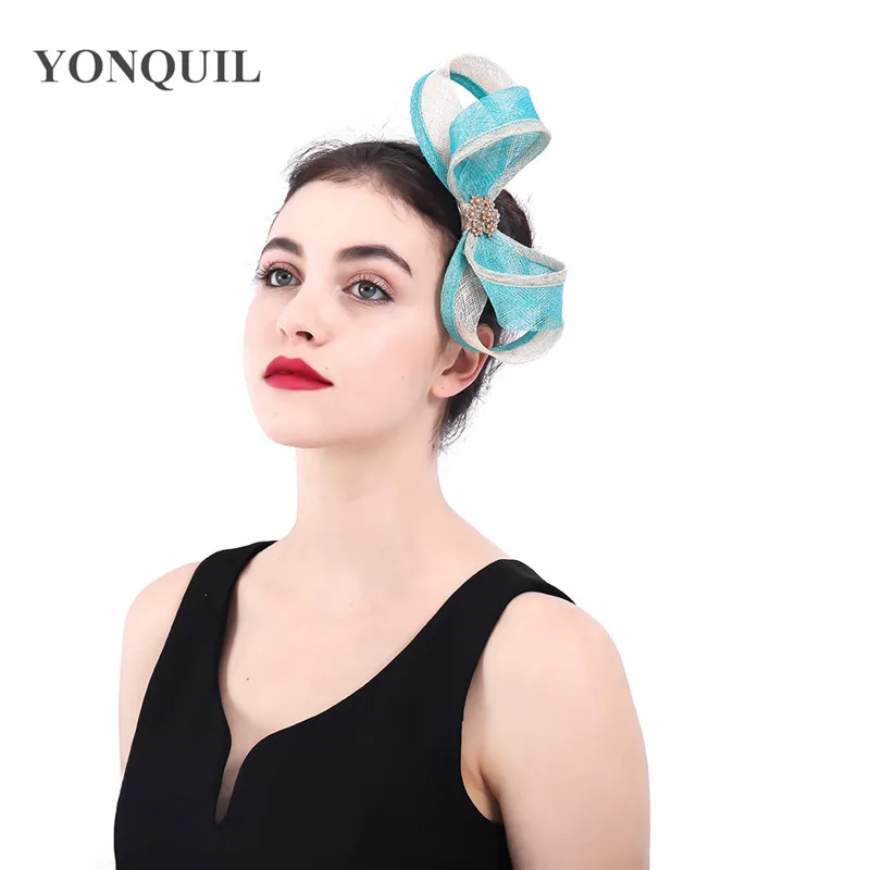 HIGH QUALITY Elegant Women Turquoise loops bow Fascinator hair accessories with brooch ladies wedding party flor