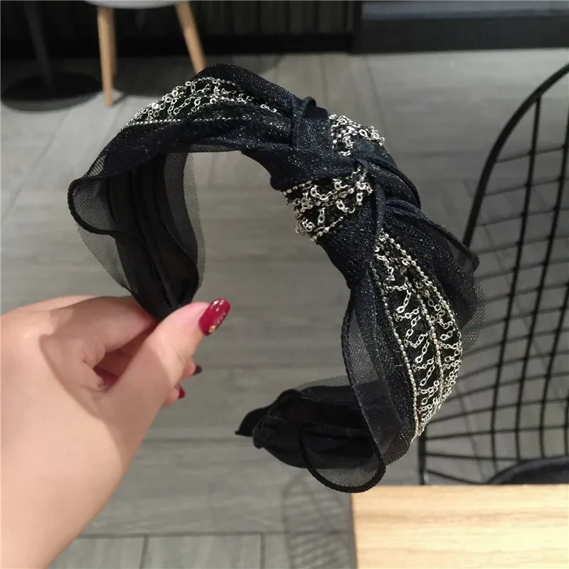 Best Seller Fashion Korean style Lace Rhinestone hairband Women Girls Fashion Sexy Simple crystal Hair Hoop hea