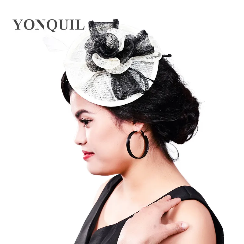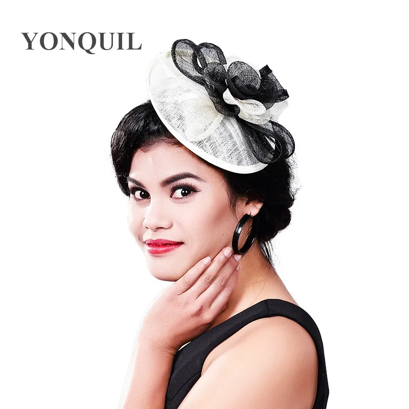 TOP Sinamay gorgeous fascinator hat wedding womens elegant headwear feather headbands hair accessories