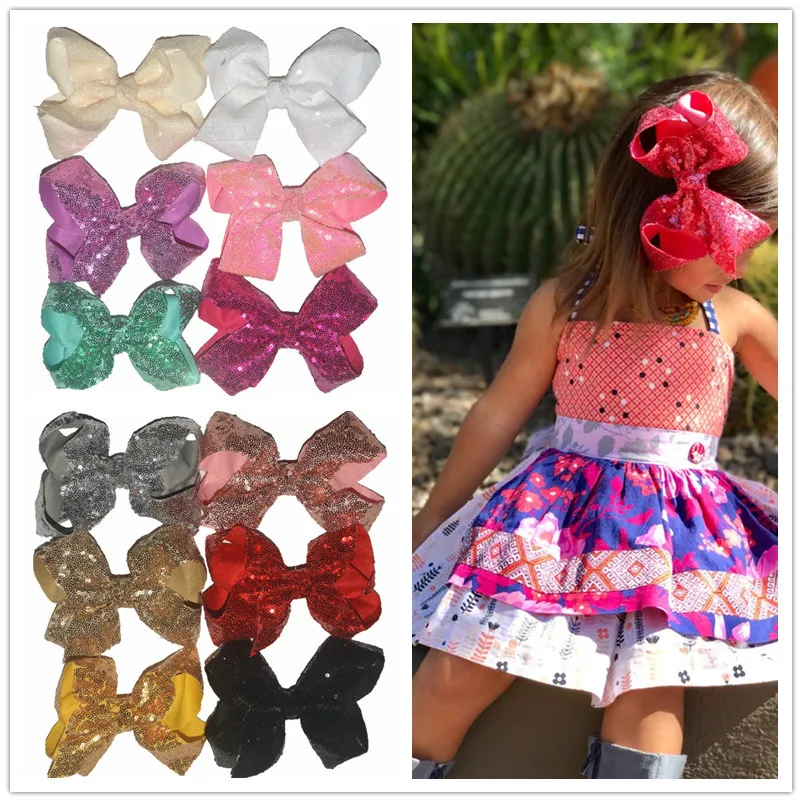 HIGH QUALITY 6 inch Sequin Glitter Ribbon Knot Bow Hair Jewelry Clips Girl Children Headwear Ornament Accessorie