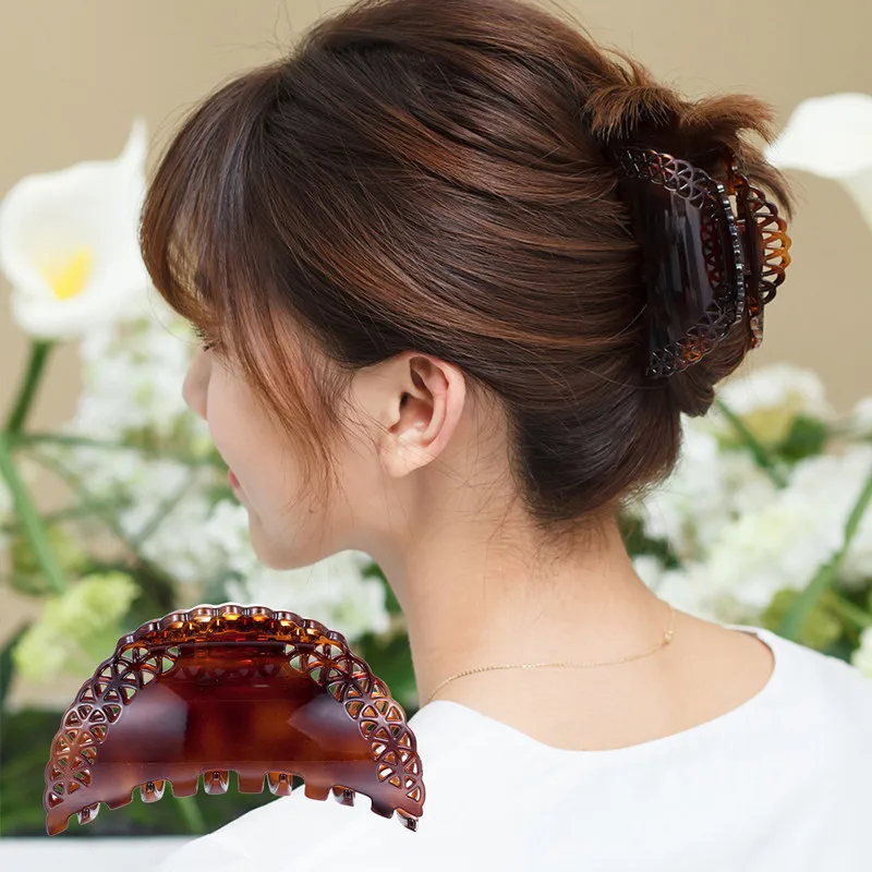 CHIMERA Vintage Brown Hair Claw Hollow-out Cellulose Acetate Hairgrip Clips Fashion Big Shower Crab