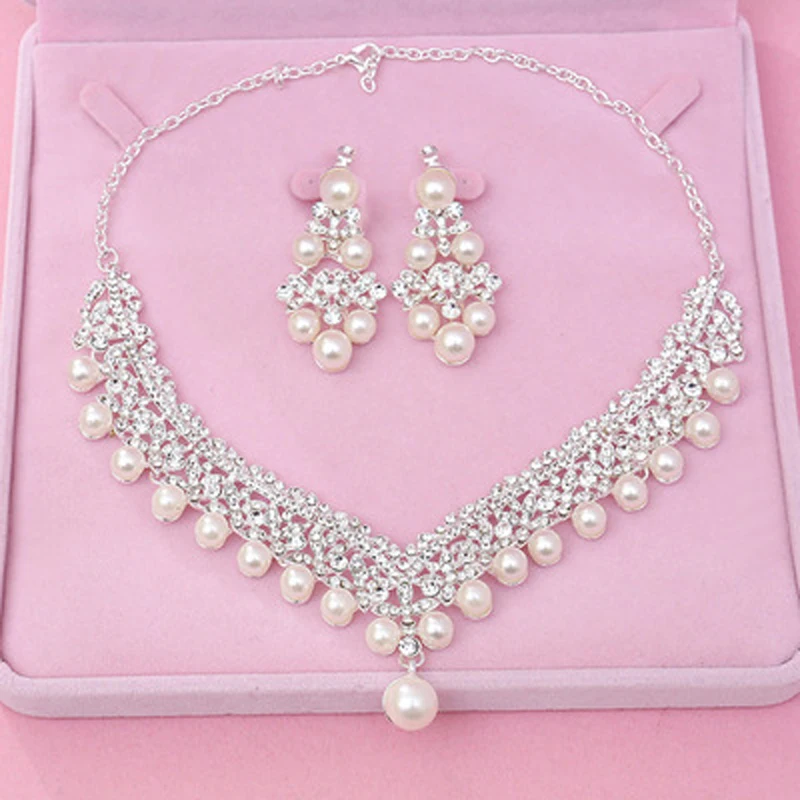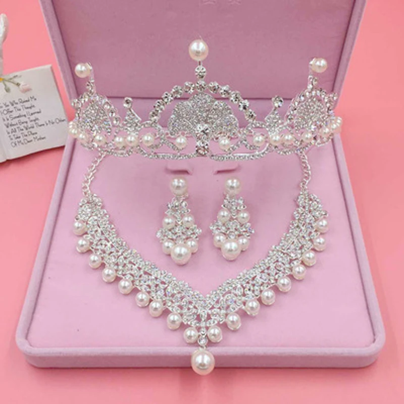 Luxury Silver Wedding Hair Accessories Pearl Rhinestone Tiaras And Crowns Bridal Necklace Earring C